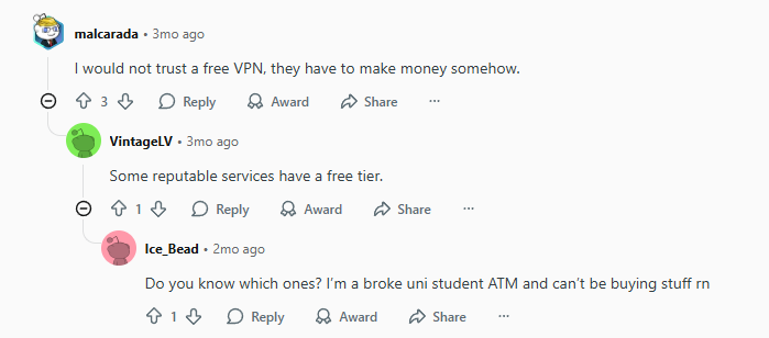 Free VPN services need to make money somehow—and it’s usually by selling your data. As one security-conscious user noted:
