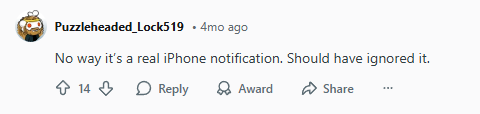 “No way it’s a real iPhone notification. Should have ignored it.”