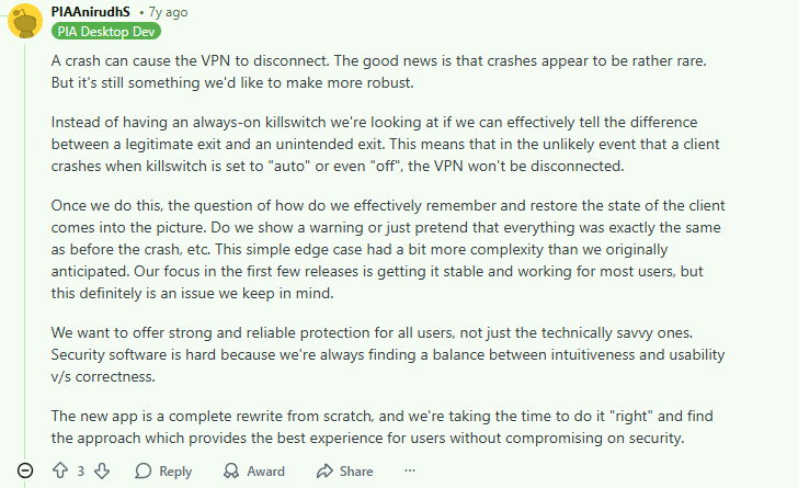 Surfshark’s kill switch is designed for a seamless user experience, which is a major reason for its popularity. A user on r/VPN highlighted this straightforward effectiveness: