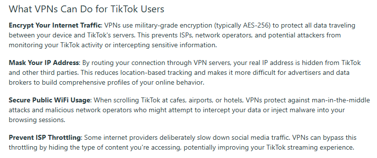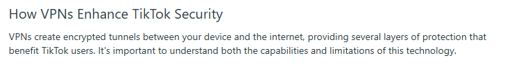 “VPNs create encrypted tunnels between your device and the internet, providing several layers of protection that benefit TikTok users.”