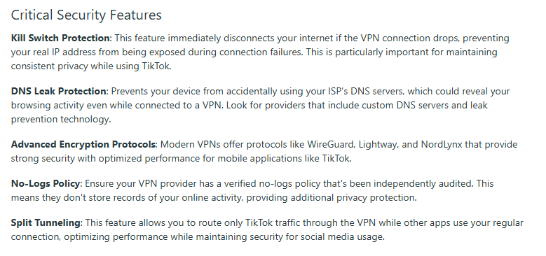 Critical VPN Features for TikTok Security (Ultimate Tiktok VPN)